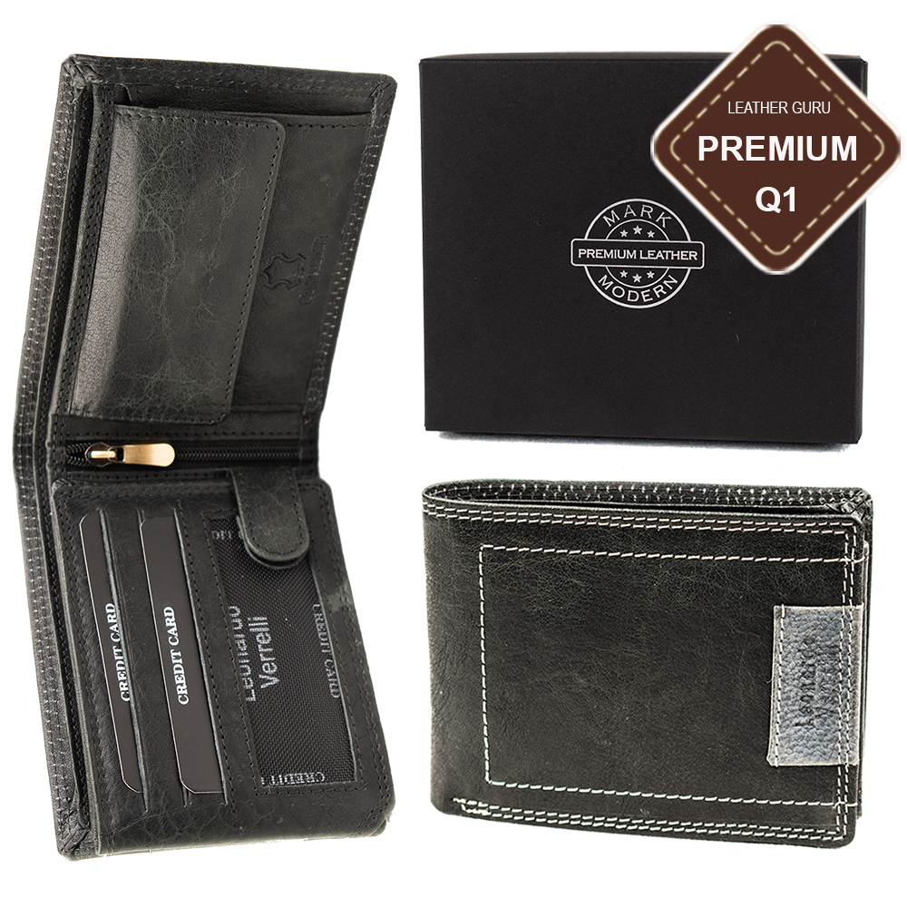 Pánská kožená peněženka černá premium kůžě značky Leonardo Verrelli 9925